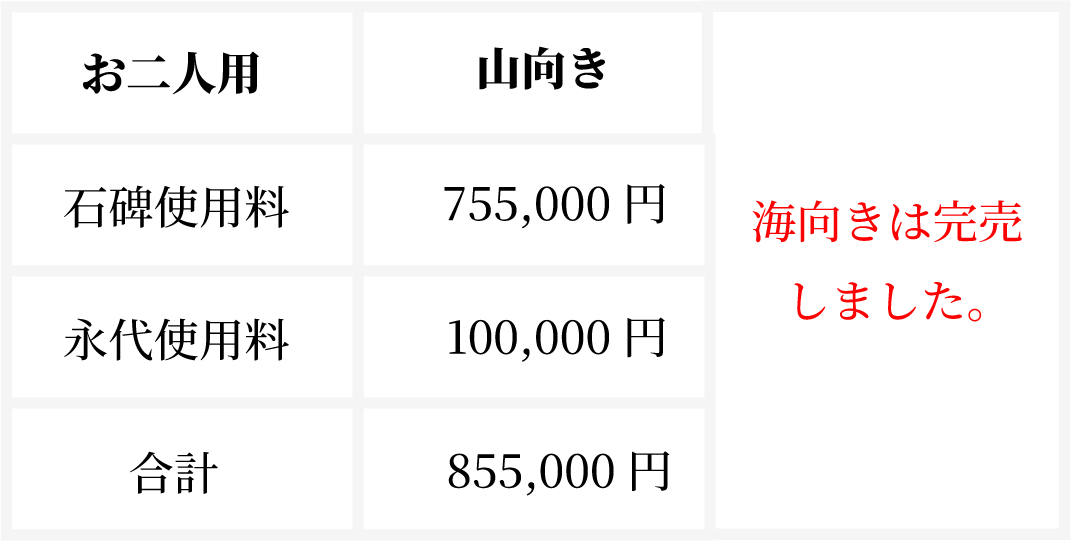 ※お二人目の方を納骨される時、別途永代供養料10万円を申受けます。
